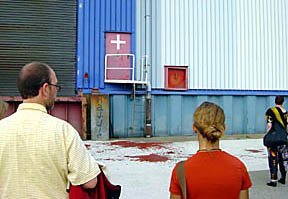 Eine Blutlache inszeniert den Ort "Schuppen 25".