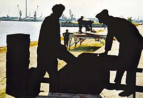 SCHATTENBILDER Silhouetten von Hafenarbeitern aus der Vergangenheit