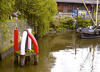 eingerammte Pfähle zum Befestigen von Schiffen. Zusätzlich waren sie