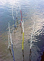 Zusammen ergeben sie einen kleinen Wald, an jedem Baum ist der Stand der Gezeiten