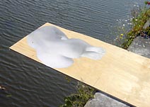 Bad im alten Verladekanal ein. Im Hafenbecken spiegelt sich das Foto einer Wasserleiche,
