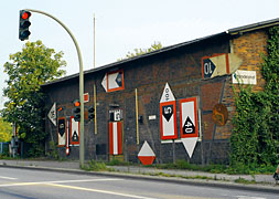 sich aus alten Schifffahrtszeichen, emaillierten Bahnsignalschildern, ausgeleierten