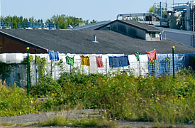 Wäscheleine an der Kaikante.