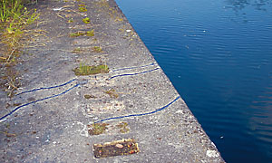 Einige scheinen willkürlich, andere planvoll in die Kaikante hinein gehauen..