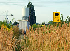 Auf dem Gelände der HAFENSAFARI stehen gelbe Schilder, die in ihrer Erscheinung