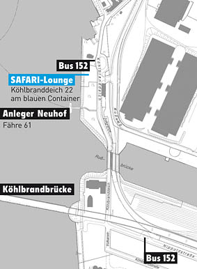 Ort: SAFARI-Lounge, Köhlbranddeich 22 hinterm Fähranleger