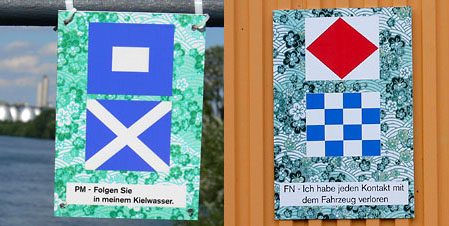 jeden Buchstaben gibt es eine entsprechende Flagge, Zahlen werden durch Wimpel