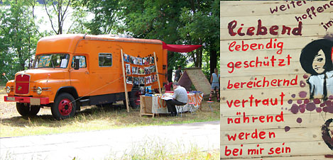 ihren Ausstellungsraum, einen Oldtimer-LKW, für rund zwei Wochen im Safari-