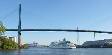 Vor der Kulisse der Köhlbrandbrücke bitten die Köchinnen Claudia