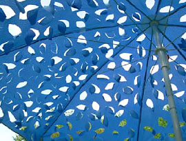 Schatten spendeten. Der Stoff der Schirme hat eingeschnittene Muster