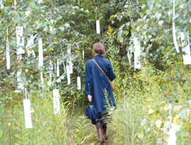 As each visitor put a tag onto a tree, this temporary forest expands organically